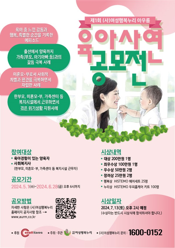【추천공모전】제1회 여성행복누리 아우름 육아 사연 공모전