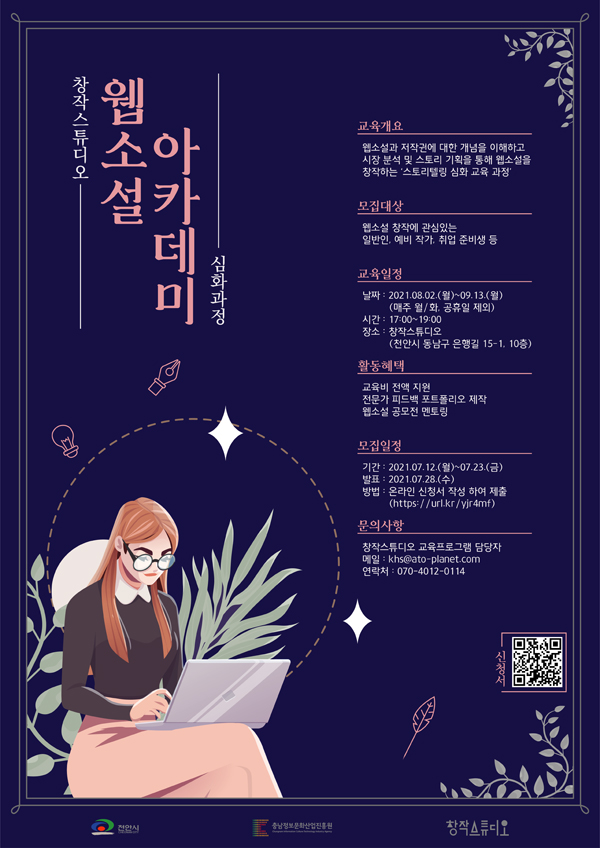 ■ 교육 내용 : 웹소설에 대한 이해를 통해 본인만의 스토리 기획하고 자신만의 콘텐츠를 창작해보는 과정입니다.